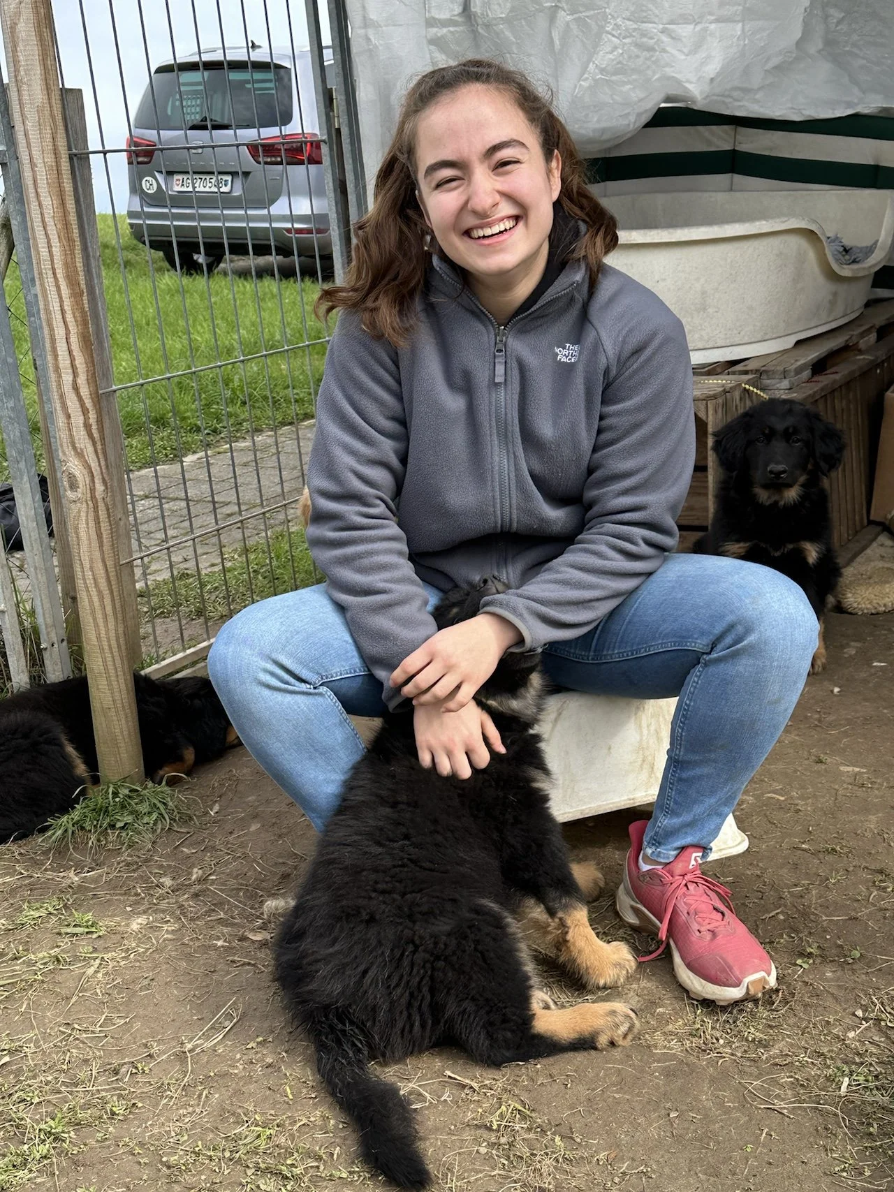 2002 zog Simca, eine sanftmütige und anhängliche Berner Sennenhündin bei uns ein. Auf unseren Spaziergängen trafen wir immer wieder zwei Hovawart-Rüden. Diese kraftvollen, eleganten und stolzen Hunde gingen mir nicht mehr aus dem Kopf. Als unsere vier Kinder zwischen 2 und 8 Jahren alt waren, mussten wir Simca gehen lassen. Damals entschied ich mich nochmals für einen Berner Sennenhund, denn ich hatte grossen Respekt vor dem oft genannten starken Eigenwillen und dem ausgeprägten Selbstbewusstsein des Hovawarts. So stiess 2012 Rajah zu unserer Familie. Auch sie war ein wunderbarer Familienhund, glücklich, wenn sie einfach dabei sein konnte. Als wir Rajah 2021 hergeben mussten, war die Zeit für einen Hovawart gekommen. Es verstrich mehr als ein Jahr bis wir im August 2022 Nya vom Wildweibchenstein abholen durften.
